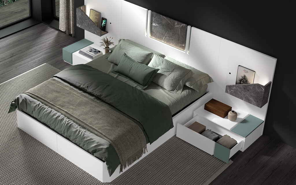 Camas, cabeceros, mesitas y armarios diseñados para crear espacios acogedores y funcionales.